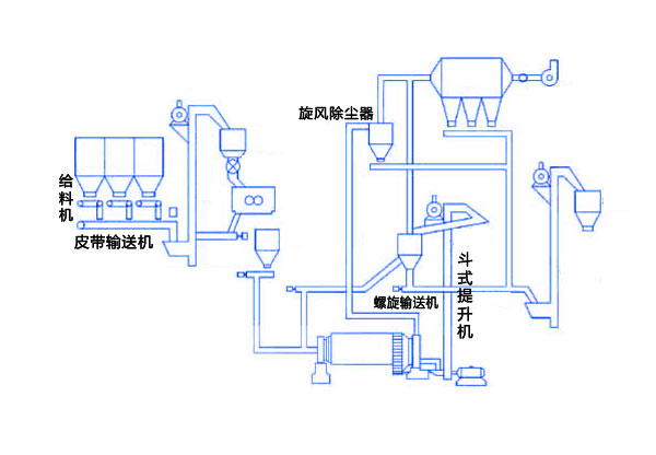石膏粉生產(chǎn)線主要加工流程為:石膏礦石—振動給料機(jī)-破碎機(jī)-斗式提升機(jī)-原料倉-斗式提升機(jī)-沸騰爐(配除塵器)-斗式提升機(jī)-輸送機(jī)-儲存輸送-成品。其中對石膏礦石的輸送提升是整個石膏粉生產(chǎn)線重要的環(huán)節(jié)。
