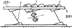 振動整列輸送機當槽體向前振動時,依靠物料與槽體間的摩擦力把運動能量傳遞給物料,使物料加速運動,此時物料的運動方向與槽體的振動方向相同。當槽體向后振動時,物料因受慣性作用,仍將繼續向前運動,槽體則從物料下面往后運動,由于運動中阻力的作用,物料越過一段槽體又落回槽體上。