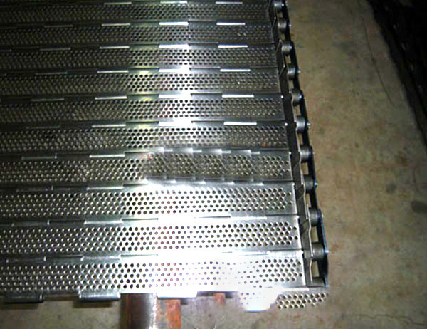 瀝水鏈板機也叫瀝水鏈板輸送機,是瀝水輸送機的一種,該輸送機適合長距離輸送,可以通過多列鏈板并行,使鏈板輸送機做的很寬并形成差速,利用多列鏈板的速度差使多列輸送在無擠壓的情況下變?yōu)閱瘟休斔停瑥亩鴿M足飲料貼標、灌裝、清洗等設(shè)備的單列輸送的要求,我們可以將兩條鏈板輸送機的頭尾部做成重疊式的混合鏈使得瓶(罐)體處于動態(tài)過度狀態(tài),使輸送線上不滯留物料,可以滿足空瓶以及實瓶壓力和無壓力輸送。